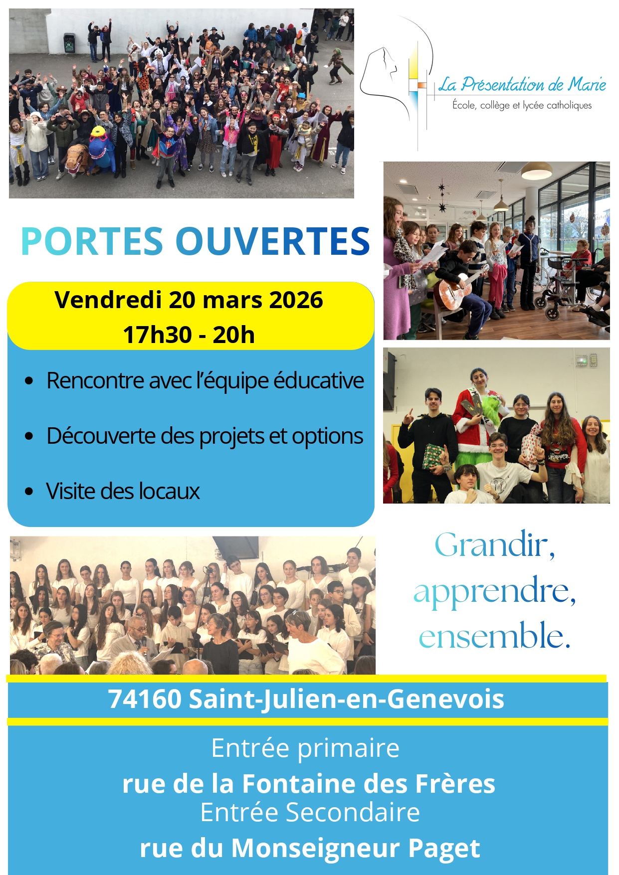 Nous organisons le vendredi 20 mars 2026 notre soirée portes ouvertes ! Vous êtes ainsi invités à venir dans notre établissement scolaire faire une visite guidée, accompagnés de groupes d'élèves volontaires qui vous feront rencontrer tout ceux qui composent l'équipe pédagogique ainsi que nos locaux. La rencontre se fera entre 17h30 et 20h, et vous [...]